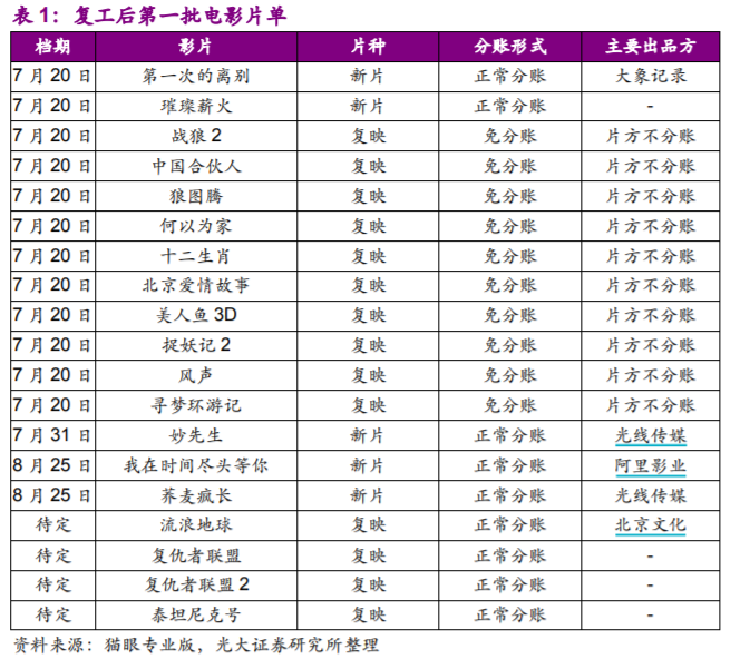 后续随着影院防疫常态化得到逐步验证,上座率将逐渐上升。预计10月份,随着国庆档的开启,以及电影院的常态化防控措施得到逐步的验证,上座率预计将恢复到往年同期水平,届时上半年积压的优质电影将扎堆上映,电影板块有望迎来迟到的“报复性消费”。