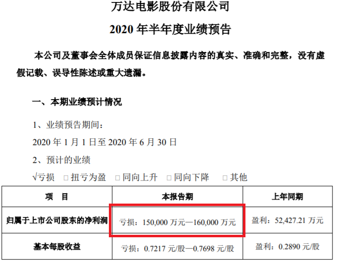 尤其是影视巨头万达电影(18.700, 0.22, 1.19%),上半年预计亏损15亿-16亿元,而去年同期为盈利5.24亿元。